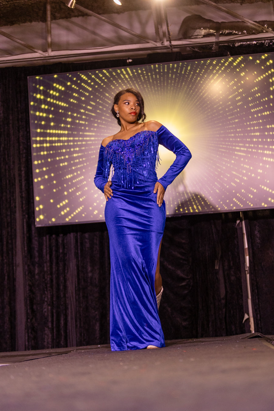 Step into pure elegance with this stunning champagne statement gown. Designed to radiate sophistication, this breathtaking piece features intricate textured detailing that adds depth and luxury to the fitted bodice. The soft champagne tone creates a timeless, glamorous look that captures light beautifully from every angle.